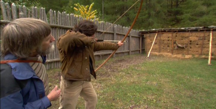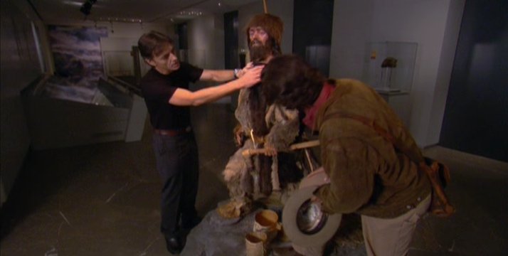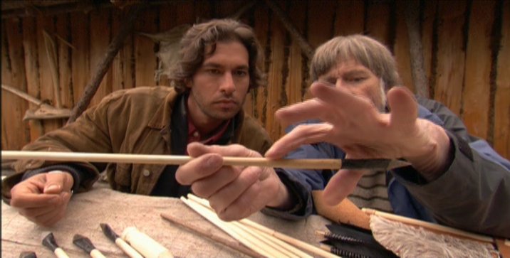 The Deer Hunter: "I know some people will take offense at my shooting a dead deer with a bow and arrow, but this is a critical part of experimental archeology. I need to know if this bow and arrow (the same material as Oetzi's) can actually be a viable weapon. And let's face it, in the Stone Age people hunted to eat and to survive. (By the way, what you see on TV is the first take we did with the bow and arrow. I used to be a fanatical archer.)"