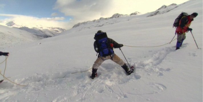 The Helevac Rescue: "This, my friend, is VERY real. You can tell because we have almost no footage of it—we packed up the cameras and raced for our lives to the helicopter. Looking back on it now, there wasn't much we could do: The storm came in very fast from behind the other side of the ridge, so we couldn't see it building or closing in. By the time we saw it, Markus knew he had to call in a chopper or risk our spending the night on a glacier with inappropriate gear. It would have gotten ugly..."