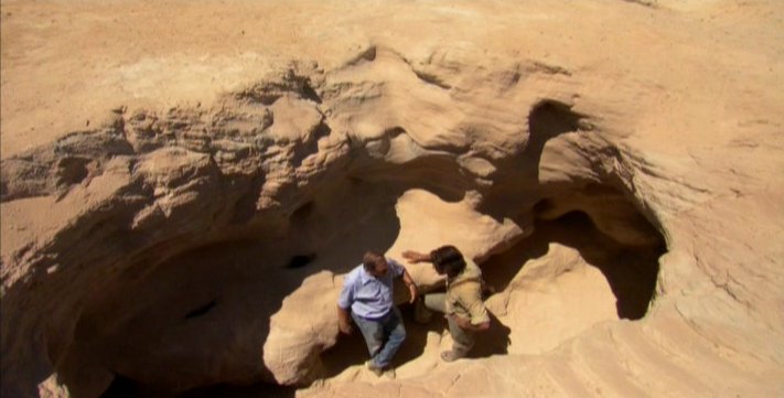 Copper: "So it turns out these were mines for copper not gold. Oh well. But I do find it interesting that the miners created thousands of shafts around here. Had I not been shown what they look like, I might have walked right by them—they're like potholes filled with sand. Only these potholes go down several meters and have filled with tons of sand over many, many centuries."