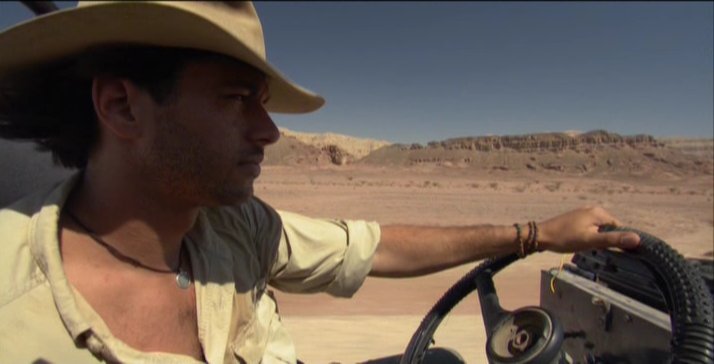 The Negev: "The Negev Desert is one of my favorite deserts in the world. There's something about the combination of blue sky and tan sand here that just feels mystical and pure—and the jagged, sharp silhouettes of rock around here only add to it. I think there's a reason mystics come to deserts for inspiration and insight. But despite trips here in the past, I didn't know that Solomon's Mines were thought to have been here—it's even listed on the maps as such (perhaps a tourist gimmick). Either way, I'm excited to meet with Sariel and hear what he has to say about this."